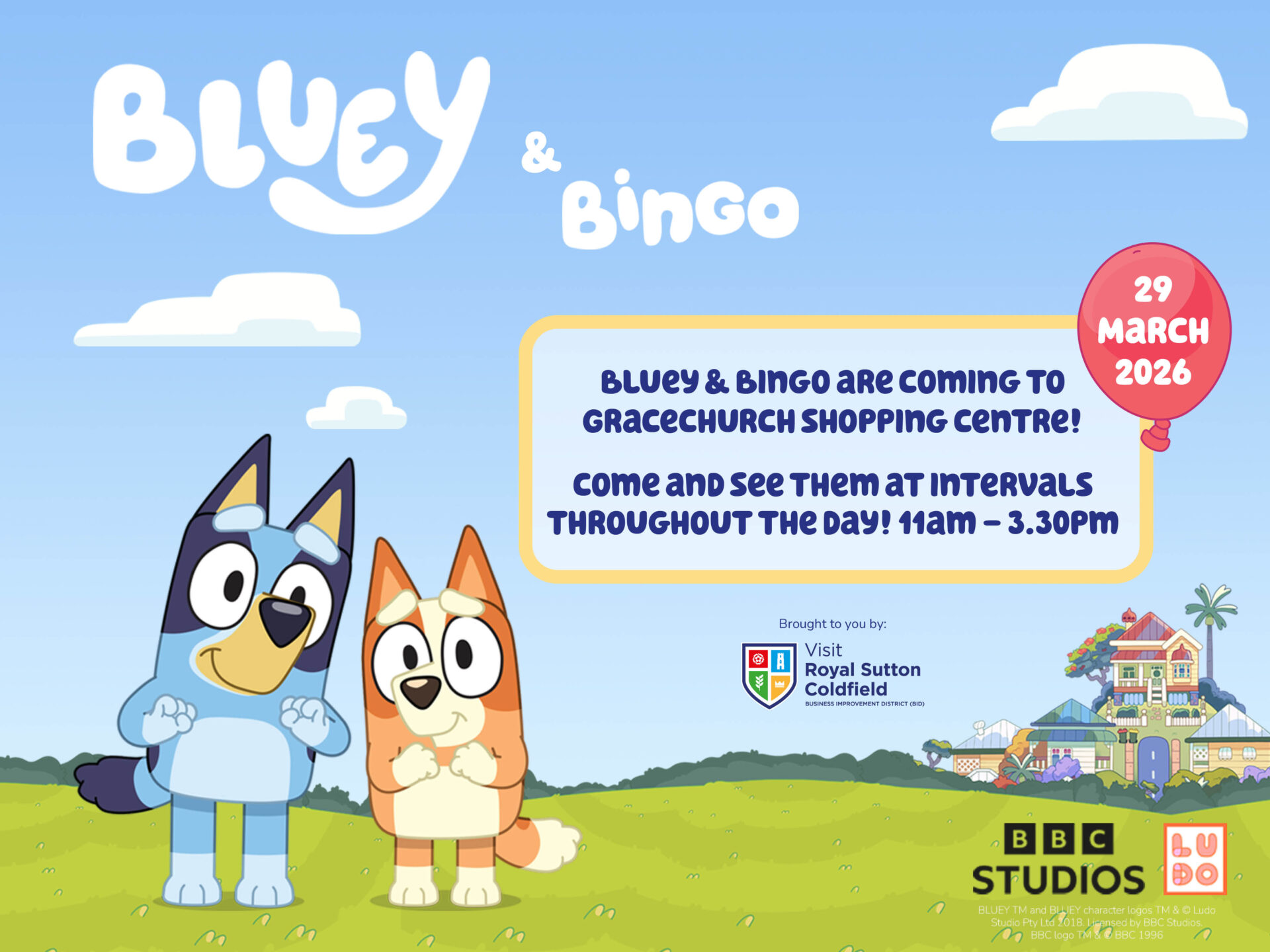 Bluey & Bingo will be outside Ted’s Potatoes and House of Fraser in Gracechurch Shopping Centre.